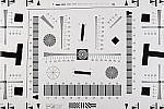Part of the impetus in developing the new Multi Target in April 2009 was to switch to using a new 2x target for the resolution measurements, since the original ISO 12233 chart we'd used since the site first began in 1998(!) had become inadequate for testing the highest-resolution cameras. We'd for quite some time had a "homemade" 2x target, employing a shrunk version of the ISO 12233 chart, shot at 1/2 size. The resolution numbers on that chart all needed to be doubled to convert to the actual values, though, so we decided to go with a commercial 2x target to eliminate possible confusion on the part of our readers. Numbers on this new 2x resolution chart now read directly in hundreds of lines/picture height. (Because almost all of the area of this new resolution chart is now meaningful for resolution measurements, there was no longer space on it to overlay the MacBeth and other color targets on our prior Multi chart; hence the simultaneous change in our Multi target.) |
