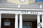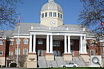 Far Field Test 2 While the House poster in the shot above provides absolute repeatability from test to test, it doesn't offer the range of brightness (dynamic range) that the original scene had, nor does it contain the nearly infinite range of fine detail found in nature. For these reasons, we shoot an outdoor photo of a building, to provide a more challenging (if more variable) subject for the cameras. Until Summer of 2011, we used the original house from the House poster for this "Far Field" shot, but the ever-encroaching trees made it less and less useful. The coup de grace for that subject was when the neighbor across the street relandscaped his yard so we could no longer shoot from our original position. In place of the original house, we've switched to using the Roswell, GA City Hall building, which offers many of the elements of the original Far Field subject, but in a setting where we're guaranteed access into the future, and without the threat of trees eventually obscuring the building. In this shot, we look at how the camera handles rendering of subtle detail (the bricks, both in the sunlight and in the deep shadows under the entryway roof), how it handles bright highlights (the white columns and reflections from the dome), and shadow detail (in the dark areas beneath the shrubs on either side of the steps). Note though, that because this is shot outdoors, the character of the light is unavoidably going to change quite a bit, depending on the atmospheric humidity and the time of year. - You thus shouldn't rely on it for absolute comparisons between cameras, since it's unlikely that conditions will be exactly the same from one test to the next.