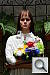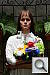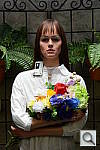 "Sunlit" Portrait The lighting in this shot is deliberately awful, about what you'd expect from noontime sunshine here in the Atlanta, GA area. (In fact, the color balance has been chosen to pretty well match the hazy sunshine here in mid-August.) The reason for the harsh lighting is to provide a real "torture test" of how cameras handle conditions of extreme contrast; and in particular, how well they do holding onto highlight detail. Look for: