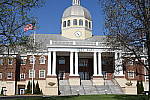 Far-Field Test 2 While the House poster in the shot above provides absolute repeatability from test to test, it doesn't offer the range of brightness (dynamic range) that the original scene had, nor does it contain the nearly infinite range of fine detail found in nature. For these reasons, we shoot an outdoor photo of a building, to provide a more challenging (if more variable) subject for the cameras. Until Summer of 2011, we used the original house from the House poster for this "Far Field" shot, but the ever-encroaching trees made it less and less useful. The coup de grace for that subject was when the neighbor across the street relandscaped his yard so we could no longer shoot from our original position. In place of the original house, we've switched to using the Roswell, GA City Hall building, which offers many of the elements of the original Far Field subject, but in a setting where we're guaranteed access into the future, and without the threat of trees eventually obscuring the building. In this shot, we look at how the camera handles rendering of subtle detail (the bricks, both in the sunlight and in the deep shadows under the entryway roof), how it handles bright highlights (the white columns and reflections from the dome), and shadow detail (in the dark areas beneath the shrubs on either side of the steps). Note though, that because this is shot outdoors, the character of the light is unavoidably going to change quite a bit, depending on the atmospheric humidity and the time of year. - You thus shouldn't rely on it for absolute comparisons between cameras, since it's unlikely that conditions will be exactly the same from one test to the next.