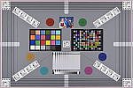 Our new "Multi Target" was first put into use in April, 2009, replacing the earlier "interim" design. This target incorporates a number of elements that combine aspects of the previous Multi target, as well as the previous Viewfinder Accuracy or "VFA" chart. Here's some of what you'll find in this target: Framing marks: This chart evolved from the earlier Viewfinder Accuracy chart, so one of its major uses is to measure viewfinder accuracy. (See notes in the Viewfinder Accuracy section, at the bottom of this page, for more information on this.) USAF resolution targets: An important use of this target is in evaluating lens quality, looking how well sharpness holds up as you move from the center to the corners of the frame. The little "USAF" resolution targets arranged at the center, in the corners, and along the diagonals are very useful for making fine judgements about blur, flare and aberrations in the image. We generally show crops of a USAF chip from a corner of the target and from the center, to show how lenses hold sharpness at wide and telephoto focal lengths. Alignment "bullseyes:" We find these graphics from the graphic arts world (used to align sheets of film in the old film-based prepress days) very useful for seeing chromatic aberration in lenses. The bold black/white elements are good for seeing the colored fringes caused by CA in the corners of the frame. MacBeth ColorChecker Chart: This is about as common a color standard as you can get these days, very widely available for only mildly exorbitant cost, and quite well controlled in its production. It thus serves as a good basis of comparison between cameras and between test setups. Imatest also understands the MacBeth colors very well, and uses them to produce its color accuracy map that we feature in all our reviews. MacBeth ColorChecker SG Chart: The ColorChecker SG chart provides a wider range of colors, to give a more detailed map of a camera's color handling. We haven't begun using this chart in the color-accuracy graphs we routinely offer, but expect to do so at some point in the future. In the meantime, we sometimes refer to this chart internally, to get a more complete idea of what a camera's color map looks like. Log C/F Target: The progressive resolution pattern located just below the center of the target is a Log C/F (logarithmic contrast vs spatial frequency) chart. Digital camera noise reduction routines work by looking at levels of local contrast, flattening-out detail at progressively lower spatial frequencies as the local contrast decreases. (This is very commonly seen in human hair, grass, foliage, and other subjects with subtly-contrasting fine detail.) This chart lets Imatest analyze just how a camera makes the tradeoff between contrast, detail, and image noise. Color Starbursts: The six circular starburst elements arranged around the target are intended to reveal de-mosaicing artifacts and color-dependent resolution issues. The six starbursts provide examples of each combination of RGB colors intersecting each other. (That is, red, green, and blue against black, plus red against green, green against blue, and blue against red.) Given that the most common sensor RGB color filter pattern (the so-called Bayer) pattern has twice as many green pixels as red or blue, you'll generally see that the green/black starburst shows the best resolution, while the blue/red one shows the worst. The effects of different sensor geometries and color filter array patterns will be revealed here. Musicians Image: Synthetic test patterns only tell you so much. While we have a lot of pictorial images in our other test targets, we thought it would be useful to include a small "natural" image here as well.