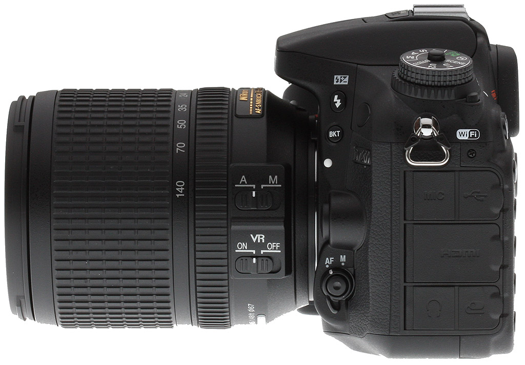 And finally, your patience pays off: We have the first notable changes. At the top of the Nikon D7200's left shoulder sits a new Wi-Fi logo, hinting at this new model's ability to communicate wirelessly with smartphones and tablets. And beneath, the bottom-most of the protrusion of access panels is no longer marked to indicate that the remote control terminal can be used with an optional GPS receiver to geotag your photos. It's a bit of a curious change, because the capability is still there -- you just have to crack open the manual to see where the GPS receiver is plugged in.