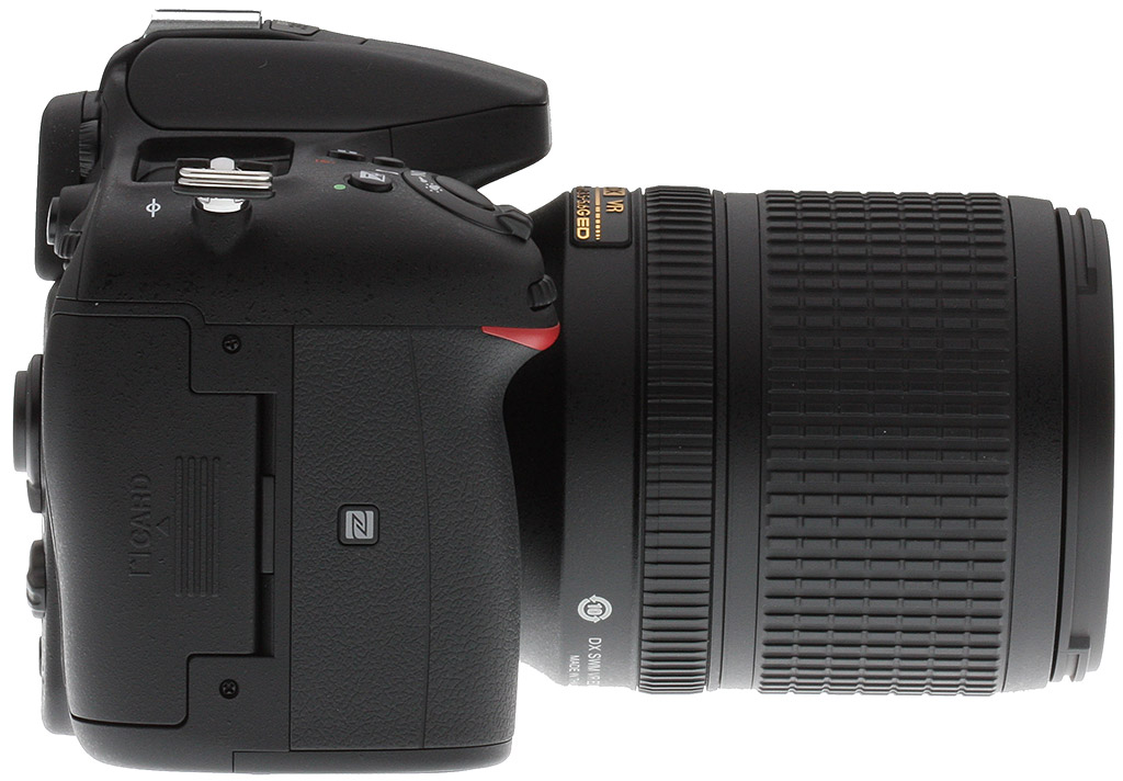 And it's on the right side of the Nikon D7200 that we can see the sole remaining change we spotted. Inset into the side of the handgrip, just forward of the flash card compartment door, is a small logo indicating the presence of a Near-Field Communications antenna. Hold the NFC antenna of your Android smartphone adjacent to this logo, and the Wi-Fi connection will pair automatically, saving you a little time. Sadly, most Apple devices lack NFC antennas, and those few which provide them have locked them down for Apple's sole use, so iOS users will still need to pair manually.