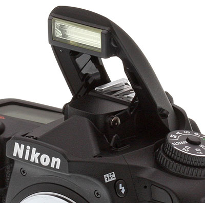 A fairly powerful pop-up flash with narrow coverage. Average exposure compensation required.