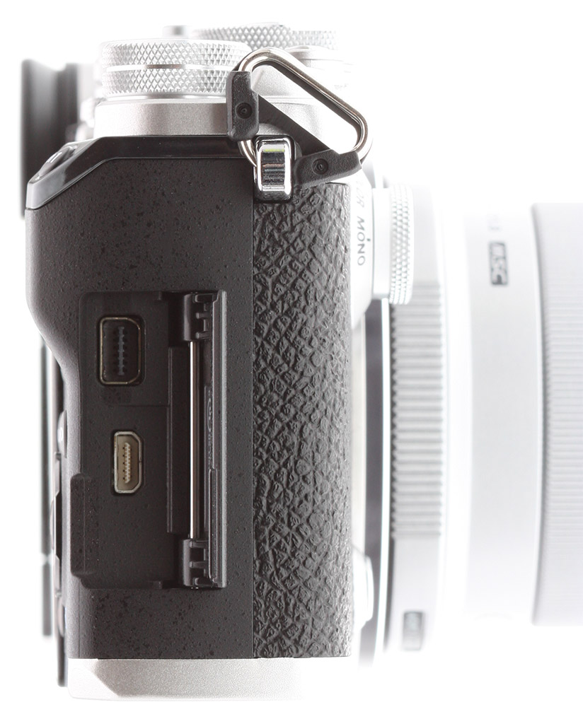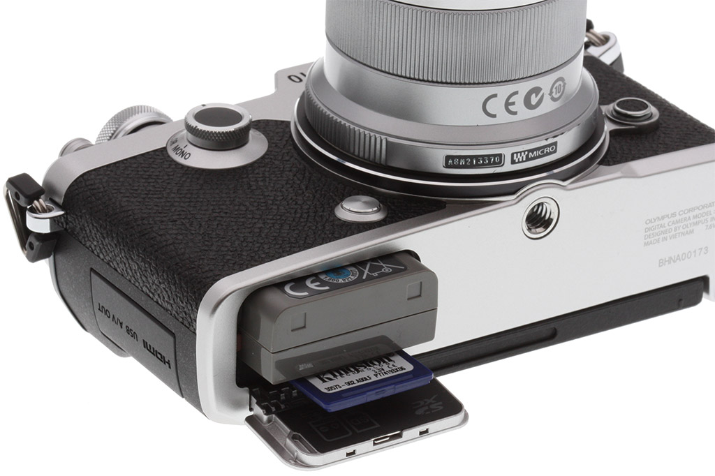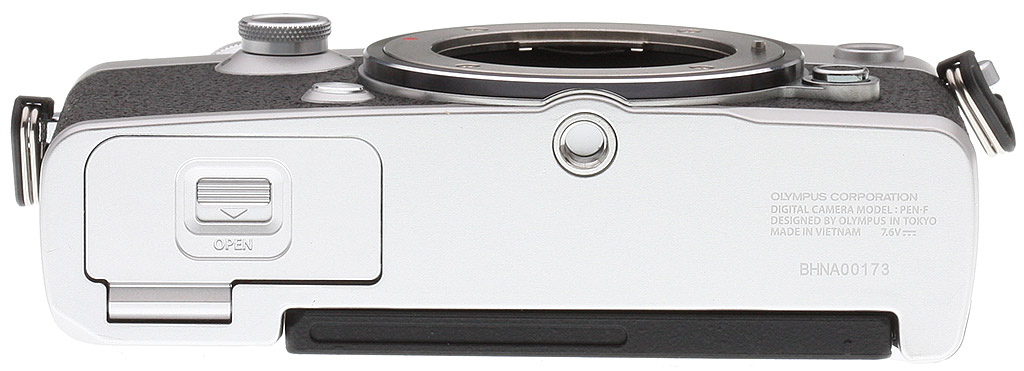 Wired connections on the Olympus PEN-F include USB 2.0 High Speed data, NTSC / PAL standard-definition video output (which shares the same connector as USB), Type-D Micro HDMI high-definition video output, and a flash hot shoe. As mentioned previously, there's no external mic or headphone jack.