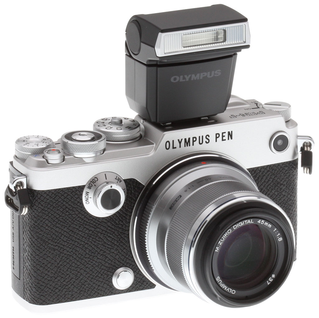 Price and availabilityThe Olympus PEN-F began shipping in March in a body-only configuration for US$1,199.99 (CAD $1,499.99) in black or two-tone silver and black, and the FL-LM3 flash unit is included. Optional accessories include a leather half-case and a nifty external grip attachment with built-in Arca-Swiss-compatible flanges.
