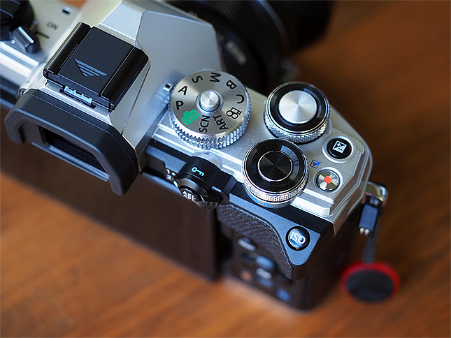 As before, the OM-5 has a very classic, almost retro-styled design -- especially if you opt for the two-toned silver and black style. The camera has a sleek, classic SLR-shaped design with an angular viewfinder in the center and prominent front and rear control dials on the top. There's a large, locking PASM control dial as well as dedicated buttons for exposure compensation and video record start/stop. There's also a dedicated ISO button conveniently placed right on the thumb rest. On the left of the EVF is the camera's on/off lever and buttons for drive mode/self-timer and button to control EVF/LCD display options. However, like most buttons on the rest of the camera, these dedicated controls can all be reassigned to other functions to fit your shooting style (with the menu providing an easy-to-use graphical view of which buttons you're customizing).