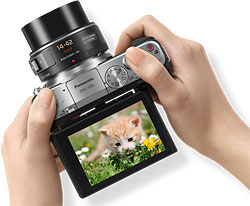 Key among these are new wireless connectivity options and a self-portrait friendly tilting LCD panel. There's also a higher-resolution sensor inherited from the Lumix GX1.
