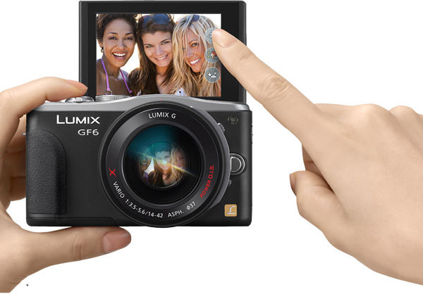Autofocus. Like most mirrorless cameras, the Panasonic GF6 uses contrast detection to determine the point of focus. As with that in its predecessor, the GF6's autofocus system is branded as Light Speed AF, and includes both full-time autofocus and tracking functions, even during video capture. Panasonic says that it now has improved low-light focusing performance, however. The company claims its new model is capable of focusing more quickly and precisely under difficult conditions such as a scene lit solely by moonlight. As in the earlier camera, it's possible to determine the point of focus with a simple tap on the camera's rear-panel touch screen display.