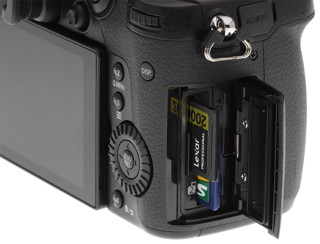 Much like the GH5 before it, the Lumix GH5S sports twin SD card slots, compatible with higher-capacity SDHC and SDXC types, as well as higher-speed UHS-I, UHS-II and Video Speed Class 90 cards. The two slots can be written to sequentially, set to segregate by file type or to serve as a backup in the event of a card failure.