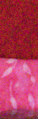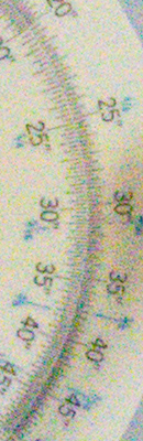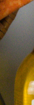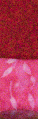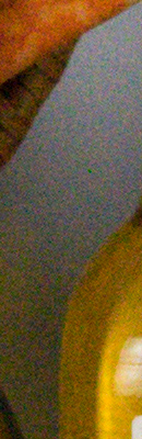 As you can see, even the lowest High ISO NR setting of -5 applies noise suppression at all ISOs. The -5 setting does apply less luminance noise suppression than the default, but as you can see, chroma noise is still fairly aggressively suppressed at both settings. Also note the signs of horizontal "streaking" near the bottom of the bottle crops at the highest ISOs, we think caused by the GM1's electronic shutter at exposures shorter than 1/500s. You can read more about the GM1's electronic shutter artifacts here.
