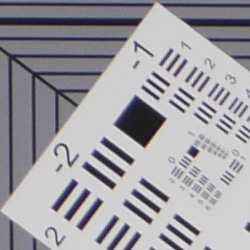 To see how much correction is taking place in the camera, we converted matching RAW files from the same test shots with dcraw, which does not correct for distortion. As can be seen above, the actual barrel distortion at wide angle is quite high at about 2.1%, while pincushion at telephoto remains the same at about 0.3%. We expect this for smaller interchangeable lenses though, so it's nothing to be concerned about unless you are using a RAW converter which does not understand the embedded "opcodes" to perform distortion corrections automatically. Most RAW converters these days (including Adobe Camera Raw and SilkyPix) are capable of applying distortion correction automatically, as specified by the manufacturer. There is however going to be some loss of resolution in the corners as a result of such correction, because pixels in the corners of the frame are being "stretched" to correct for the distortion. Obviously, a lens that doesn't require such correction, and is also sharp in the corners to begin with would be preferable, but relaxing constraints on distortion brings other benefits in the lens design, such as a more compact design.