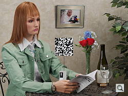 A note about focus for this shot: We shoot this image at f/4, usually using one of three very sharp reference lenses (70mm Sigma f/2.8 macro for most cameras, 60mm f/2.8 Nikkor macro for Nikon bodies without a drive motor, and Olympus Zuiko 50mm f/2.0 for Four Thirds and Micro Four Thirds bodies). To insure that the hair detail we use for making critical judgements about camera noise processing and detail rendering is in sharp focus at the relatively wide aperture we're shooting at, the focus target at the center of the scene is on a movable stand. This lets us compensate for front- or back-focus by different camera bodies, even those that lack micro-focus adjustments. This does mean, though, that the focus target itself may appear soft or slightly out of focus for bodies that front- or back-focused with the reference lens. We know this; if you click to view the full-size image for one of these shots and notice that the focus target is fuzzy, you don't need to email and tell us. :-) The focus target position will have been adjusted to insure that the rest of the scene is focused properly.