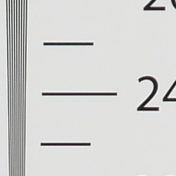 Sharpness. The Panasonic LX100 II captures fairly sharp, detailed images overall, with relatively conservative default sharpening. Only minor edge enhancement artifacts are visible on high-contrast subjects such as the sharpening "halos" along the lines and text in the crop above left, so default sharpening is well-judged and not too overdone. Edge enhancement creates the illusion of sharpness by enhancing colors and tones right at the edge of a rapid transition in color or tone.
