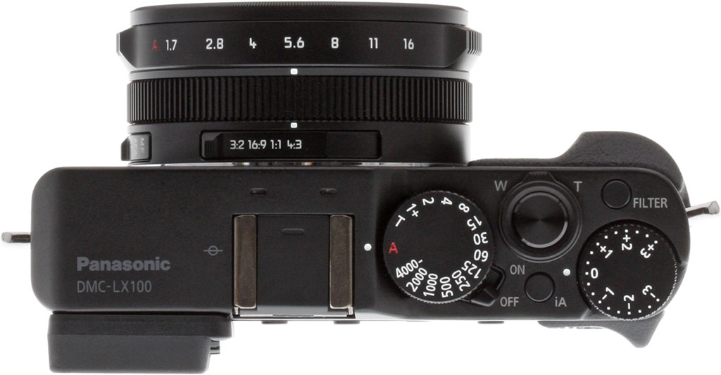 Seen from above, it's clear that this is a camera aimed at experienced photographers. There's no Mode dial on the Panasonic LX100; instead, Auto positions on both Aperture ring and Shutter Speed dial give you an intuitive way to switch between manual, priority and automatic shooting.