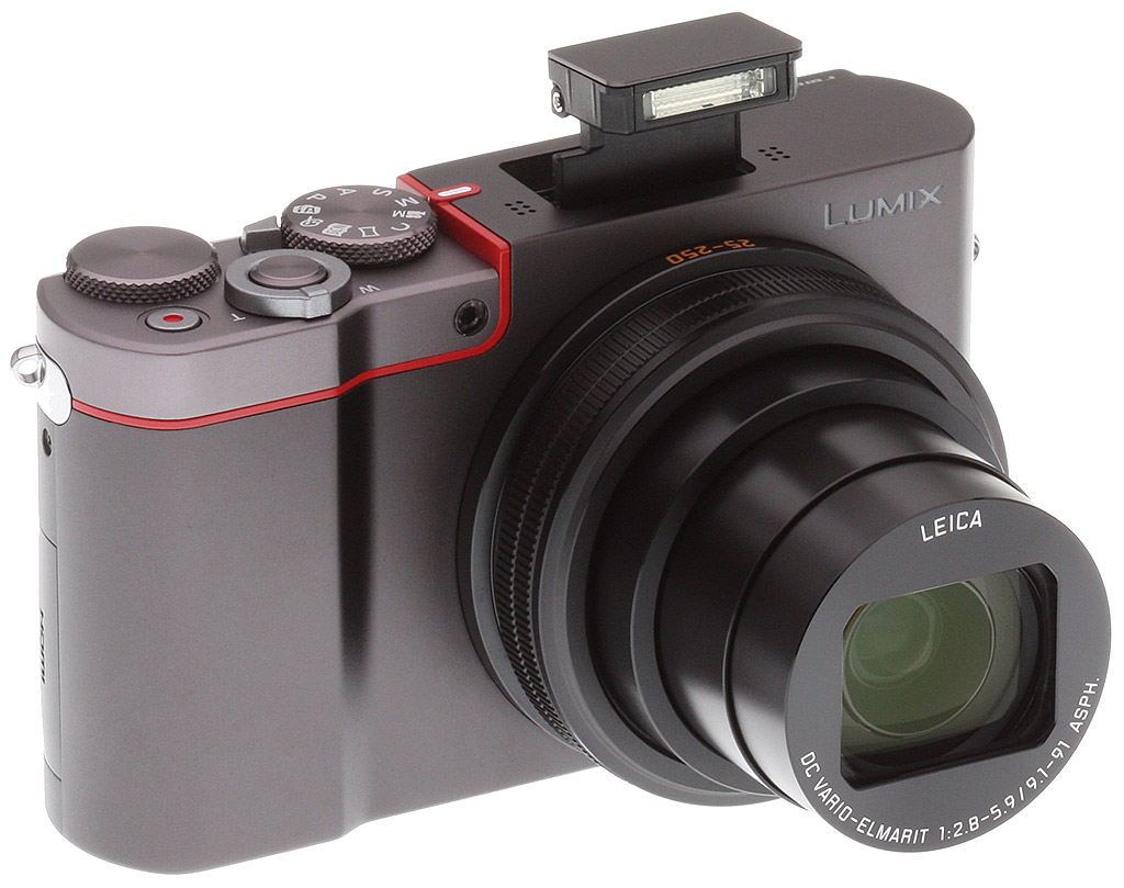 The built-in 10x optical zoom lens is what sets the Panasonic ZS100 apart from some of its compact competitors. The Leica-branded DC Vario-Elmarit lens includes twelve elements in ten groups. Five of the elements are aspherical and there are a total of nine aspherical surfaces inside the lens. The actual focal length of the lens is 9.1-91mm, and its maximum aperture range is f/2.8 at the wide end to f/5.9 at the telephoto end. When macro focusing, the lens can close-focus to 5cm at the wide angle.