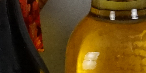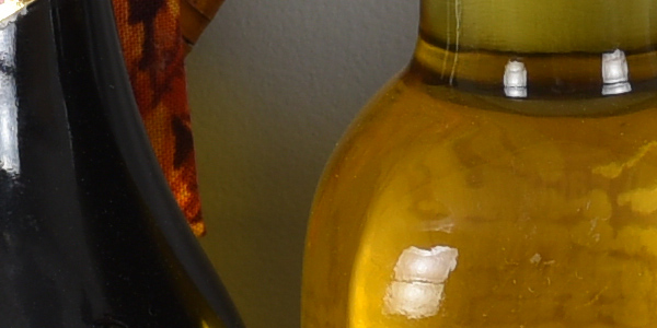 ISO 3,200 prints a very good 16 x 20 inch print, and this is still quite an impressive feat at this ISO, and very few cameras we've tested can make this claim (the 645D didn't even go to ISO 3200). There is minor noise in flatter areas of our target, like in the shadows behind the bottles, and most all detail is gone from our red fabric swatch, but otherwise a solid print.