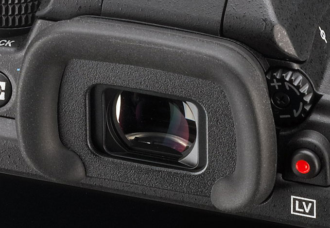 Although the dioptric adjustment range of -2.5 to +1.5m-1 is unchanged, the Pentax K-3's adjustment control is new. The earlier cameras had a linear slider control with no detents, directly above the viewfinder eyepiece. The K-3 has a rotary dial tucked in behind the right side of the viewfinder eyecup, and it has around 20 detents. While the fixed detents mean you won't be able to adjust it quite as accurately, the new control is easier to adjust, and no more or less likely to be bumped.