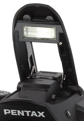 The Pentax K-30 features a built-in, pop-up flash, which operates in either Auto, Flash On (forced flash), Auto + Red-eye reduction, Flash On + Red-eye reduction, or Wireless mode. First and Second Curtain sync modes are available, as well as Slow-sync. The flash modes available depends on the current exposure mode. The flash is not auto pop-up. To release the flash from its compartment, press the Flash button on pentaprism housing. Close it again by pushing the flash head back down. The flash tube extends quite high when deployed, and even the longer-than-average 18-135mm kit lens didn't cast a shadow during our flash testing.