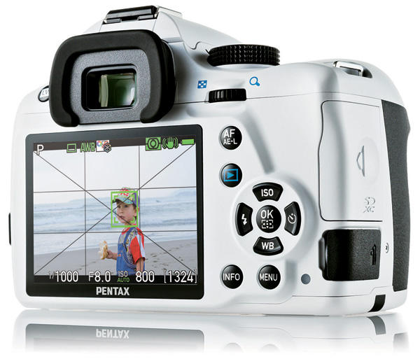On the back of the K-50 is a 3-inch, wide-view TFT LCD monitor with approximately 921,000 dots of resolution that sits flush with the body, and on top of the pentaprism is a built-in, pop-up flash and hotshoe (which features high-speed sync and wireless capabilities when a Pentax-dedicated flash is mounted on it.)