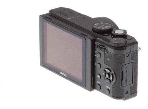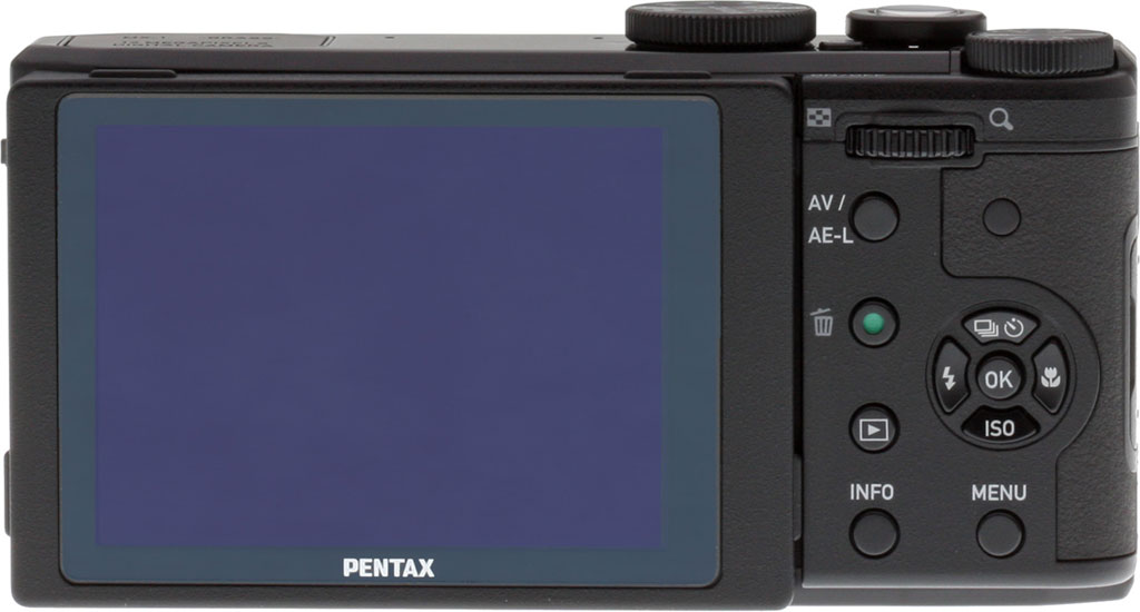 And the enthusiast-friendly design extends beyond mere styling. On the front, there's a bright 4x zoom lens that looks very much the same as that shared by the Olympus XZ-1 and XZ-2 -- and here's hoping it is the same optic, because it's one we praised for its excellent corner-to-corner sharpness. There's also that hallmark of the enthusiast-class camera, a 1/1.7-inch image sensor, with a resolution of twelve megapixels. On the top deck sits a dedicated exposure compensation dial, a nice touch that will likewise appeal to Pentax's target customer. And of course, there are plenty of other features aimed at enthusiasts, including fully manual shooting, a DNG raw file format option, sensor-shift shake reduction, dual remote control receivers and more.