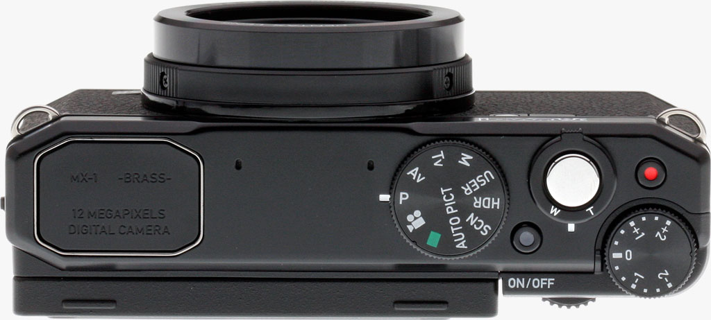 Nestled in between is a tiny dot that serves as the power button, illuminated in green when the camera is powered on. Its position between several deeper controls makes it unlikely to be accidentally bumped. Finally, at the very rightmost end is another tiny button that starts and stops movie recording, and a shallow dial that controls exposure compensation. Placing this as a separate physical control makes it clear the MX-1 is a camera aimed at enthusiasts, and it has even firmer detents, making it almost impossible to accidentally change your dialed-in setting.