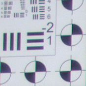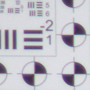 ISO 800 shots at 11 x 14 introduce too much noise in shadowy areas of our test target to score as "good", but may be usable for less critical applications. 8 x 10 inch prints are fairly good in all areas except for our tricky red swatch.
