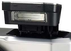 The opposite side is featureless, with the exception of the pop-up flash release slider we've already mentioned, and a tiny three-hole speaker grille near the camera's base.