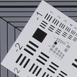 Sharpness and contrast are very good at f/8 across the frame, and chromatic aberration is quite low (see below for more on that). Performance in the corners looks to be very good (but a little difficult to evaluate in this image), with just a hint coma distortion. There is some corner shading ("vignetting"), but it's fairly minor. See below for comments on macro mode, geometric distortion, performance wide open, chromatic aberration, etc.