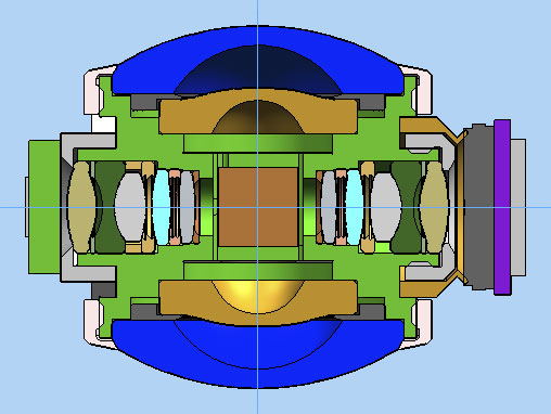 As well as the brighter lenses, Ricoh has also switched to new image sensors that are both larger and much higher resolution than in earlier models. The sensors don't actually sit in between the lenses, incidentally: Through clever use of a dual prism, Ricoh folds the optical path for each lens in opposite directions, feeding light to sensors which sit on either side of the lenses.