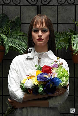 Sunlight. The Samsung NX20 struggled a bit with the deliberately harsh lighting of this test, as do a lot of cameras. Quite a few highlights are clipped in the white shirt and flowers, while some shadows are still quite dark, though noise in shadows is actually pretty good (apart from the posterization mentioned in very deep shadows). We preferred the +0.3 EV exposure overall, because the exposure of skintones in the face is better than 0 EV and +0.7 EV has too many clipped highlights. Depending on the photographer, you could lean one way or the other. Advanced users will want to shoot darker, to hold highlight detail. For those NX20 owners that are going to want to just print an image, the +0.3 EV image would probably produce the best-looking print with little or no tweaking. The bottom line though, is that the NX20 struggled in harsh lighting, producing either a slightly dim face with better highlight retention in the shirt, or a well-exposed face with more blown highlights in her shirt and flowers.