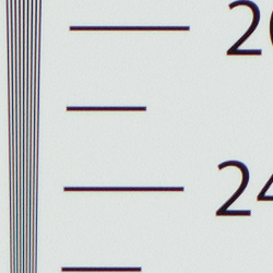 In-camera JPEGs of our laboratory resolution chart at the highest quality setting reveal sharp, distinct line patterns to about 2,300 lines per picture height in the horizontal direction, and to about 2,200 lines per picture height in the vertical direction. Complete extinction of the pattern doesn't occur until a little over 3,400 lines in the horizontal direction, and about 3,300 lines in the vertical. An Adobe Camera Raw conversion of a matching raw file showed very similar resolution along with a lot more color moiré, so the NX20 does a great job at extracting maximum high-contrast resolution at base ISO. Use these numbers to compare with other cameras of similar resolution, or use them to see just what higher resolution can mean in terms of potential detail.