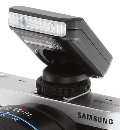 The Samsung NX300 comes bundled with the SEF8A external flash unit. It mounts in the hot shoe derives its power from the camera.