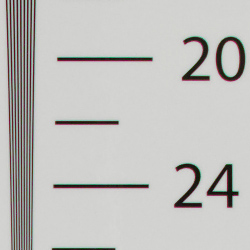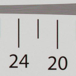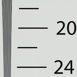 Our laboratory resolution chart revealed sharp, distinct line patterns down to about 2,200 lines per picture height in both the horizontal and vertical directions in JPEGs, though it's a little difficult to call given the strong moiré pattern caused by the camera's somewhat high default sharpening in this shot. Complete extinction of the pattern didn't occur before the limits of our chart (4,000 lines) in both directions, and as expected, no color moiré is present. There are some pixel defects that were not well corrected, but that's not unusual.