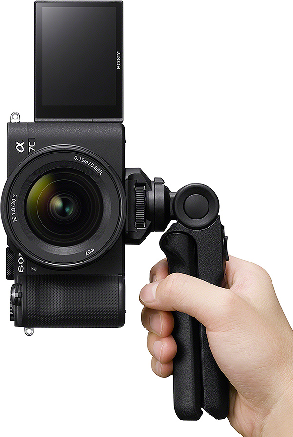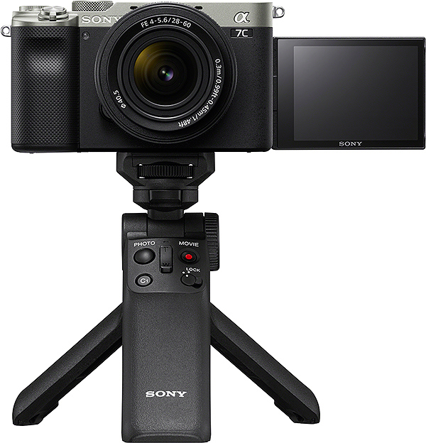 Usability during video recording was an area of focus during the design of the A7C, especially considering the target audience of the camera. Sony states that the A7C is ideal for vlogging thanks to its side-opening vari-angle LCD. Further, the camera is compatible with Sony's shooting grip with wireless remote commander, and it has a Multi Interface hotshoe with support for Sony's new Digital Audio Interface that was first seen in the A7R IV. The A7C has a dedicated recording button on the top panel as well, just beneath the power switch.