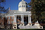Far-Field Test 2 While the House poster in the shot above provides absolute repeatability from test to test, it doesn't offer the range of brightness (dynamic range) that the original scene had, nor does it contain the nearly infinite range of fine detail found in nature. For these reasons, we shoot an outdoor photo of a building, to provide a more challenging (if more variable) subject for the cameras. Until Summer of 2011, we used the original house from the House poster for this "Far Field" shot, but the ever-encroaching trees made it less and less useful. The coup de grace for that subject was when the neighbor across the street relandscaped his yard so we could no longer shoot from our original position. In place of the original house, we've switched to using the Roswell, GA City Hall building, which offers many of the elements of the original Far Field subject, but in a setting where we're guaranteed access into the future, and without the threat of trees eventually obscuring the building. In this shot, we look at how the camera handles rendering of subtle detail (the bricks, both in the sunlight and in the deep shadows under the entryway roof), how it handles bright highlights (the white columns and reflections from the dome), and shadow detail (in the dark areas beneath the shrubs on either side of the steps). Note though, that because this is shot outdoors, the character of the light is unavoidably going to change quite a bit, depending on the atmospheric humidity and the time of year. - You thus shouldn't rely on it for absolute comparisons between cameras, since it's unlikely that conditions will be exactly the same from one test to the next.