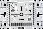 Part of the impetus in developing the new Multi Target in April 2009 was to switch to using a new 2x target for the resolution measurements, since the original ISO 12233 chart we'd used since the site first began in 1998(!) had become inadequate for testing the highest-resolution cameras. We'd for quite some time had a "homemade" 2x target, employing a shrunk version of the ISO 12233 chart, shot at 1/2 size. The resolution numbers on that chart all needed to be doubled to convert to the actual values, though, so we decided to go with a commercial 2x target to eliminate possible confusion on the part of our readers. Numbers on this new 2x resolution chart now read directly in hundreds of lines/picture height. (Because almost all of the area of this new resolution chart is now meaningful for resolution measurements, there was no longer space on it to overlay the MacBeth and other color targets on our prior Multi chart; hence the simultaneous change in our Multi target.) |