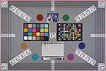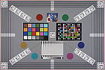 Our new "Multi Target" was first put into use in April, 2009, replacing the earlier "interim" design. This target incorporates a number of elements that combine aspects of the previous Multi target, as well as the previous Viewfinder Accuracy or "VFA" chart. Here's some of what you'll find in this target: Framing marks: This chart evolved from the earlier Viewfinder Accuracy chart, so one of its major uses is to measure viewfinder accuracy. (See notes in the Viewfinder Accuracy section, at the bottom of this page, for more information on this.) USAF resolution targets: An important use of this target is in evaluating lens quality, looking how well sharpness holds up as you move from the center to the corners of the frame. The little "USAF" resolution targets arranged at the center, in the corners, and along the diagonals are very useful for making fine judgements about blur, flare and aberrations in the image. We generally show crops of a USAF chip from a corner of the target and from the center, to show how lenses hold sharpness at wide and telephoto focal lengths. Alignment "bullseyes:" We find these graphics from the graphic arts world (used to align sheets of film in the old film-based prepress days) very useful for seeing chromatic aberration in lenses. The bold black/white elements are good for seeing the colored fringes caused by CA in the corners of the frame. MacBeth ColorChecker Chart: This is about as common a color standard as you can get these days, very widely available for only mildly exorbitant cost, and quite well controlled in its production. It thus serves as a good basis of comparison between cameras and between test setups. Imatest also understands the MacBeth colors very well, and uses them to produce its color accuracy map that we feature in all our reviews. MacBeth ColorChecker SG Chart: The ColorChecker SG chart provides a wider range of colors, to give a more detailed map of a camera's color handling. We haven't begun using this chart in the color-accuracy graphs we routinely offer, but expect to do so at some point in the future. In the meantime, we sometimes refer to this chart internally, to get a more complete idea of what a camera's color map looks like. Log C/F Target: The progressive resolution pattern located just below the center of the target is a Log C/F (logarithmic contrast vs spatial frequency) chart. Digital camera noise reduction routines work by looking at levels of local contrast, flattening-out detail at progressively lower spatial frequencies as the local contrast decreases. (This is very commonly seen in human hair, grass, foliage, and other subjects with subtly-contrasting fine detail.) This chart lets Imatest analyze just how a camera makes the tradeoff between contrast, detail, and image noise. Color Starbursts: The six circular starburst elements arranged around the target are intended to reveal de-mosaicing artifacts and color-dependent resolution issues. The six starbursts provide examples of each combination of RGB colors intersecting each other. (That is, red, green, and blue against black, plus red against green, green against blue, and blue against red.) Given that the most common sensor RGB color filter pattern (the so-called Bayer) pattern has twice as many green pixels as red or blue, you'll generally see that the green/black starburst shows the best resolution, while the blue/red one shows the worst. The effects of different sensor geometries and color filter array patterns will be revealed here. Musicians Image: Synthetic test patterns only tell you so much. While we have a lot of pictorial images in our other test targets, we thought it would be useful to include a small "natural" image here as well.