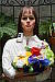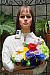 "Sunlit" Portrait: The lighting in this shot is deliberately awful, about what you'd expect from noontime sunshine here in the Atlanta, GA area. (In fact, the color balance has been chosen to pretty well match the hazy sunshine here in mid-August.) The reason for the harsh lighting is to provide a real "torture test" of how cameras handle conditions of extreme contrast; and in particular, how well they do holding onto highlight detail. Look for: