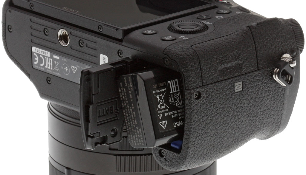 The Sony RX10 II uses the same NP-FW50 lithium-ion battery pack as did the RX10, but CIPA-rated battery life differs slightly, gaining in electronic viewfinder mode at the expense of arm's length capture. While the RX10 was rated for 420 shots using the LCD and 340 shots with the EVF, the RX10 II is rated for 400 and 360 shots respectively.