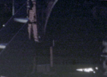 In normal scanning mode, the Super Coolscan 8000 ED can produce streaks across the image when extreme tonal adjustments are made. (This is a crop from our infamous "Train" slide. Note the horizontal bands running across the bottom third of the image.) |