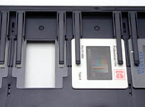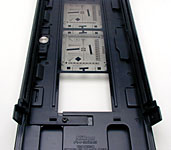 The Super Coolscan 8000 ED comes with three film holders, one for mounted 35mm slides, one for loose strips of 35mm film, and a third 120/220 strip film adapter that accommodates negative sizes from 6x4.5 to 6x9 cm. The various film adapters plug into a long cavity in the front of the unit. As mentioned earlier, the various media adapters can be plugged and unplugged with impunity at any time the 8000 ED isn't actually scanning. The scanner and driver software automatically recognize which adapter is currently in use.