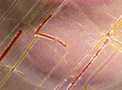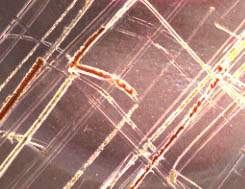 At maximum scanner resolution, the defects cover significant areas of subject detail, making correction much more difficult. NOTE, however, the dramatically reduced impact of even these heavy scratches with the Super Coolscan 8000 ED, compared to the Coolscan IV ED below. |