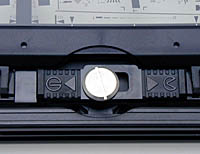 We particularly liked a feature of the 120/220 holder that let us put the film under slight tension in the mount. The inner edges of the recess that holds the film have high-friction soft plastic linings. The clamp on one side of the film is movable (by a couple of millimeters), with a "latch" that holds it in whatever position you like. (The photo inset right shows a closeup of the latch mechanism.) The trick is to close the side clamps with the movable one positioned toward the inner extreme of its range of motion. Then, pull on it gently to place the film under tension, and slide its locking lever over to hold that position. Putting the film under slight tension does a great deal to flatten it in the holder, making accurate focus across the entire frame much easier to achieve. A very nice design touch, in our estimation, addressing an issue with scanning larger pieces of film.