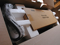 Hardware Setup. Unpacking the scanner is quick and easy. A power cable (with no brick) and a USB cable are included. The two top corner Styrofoam blocks pop off and the lightweight scanner lifts out easily. It's a dead ringer for the CanoScan 8800F with the protective plastic and orange tape removed.