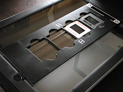 Three film holders are included with the unit for scanning two strips of 35mm negatives, four mounted slides and four 120mm frames.