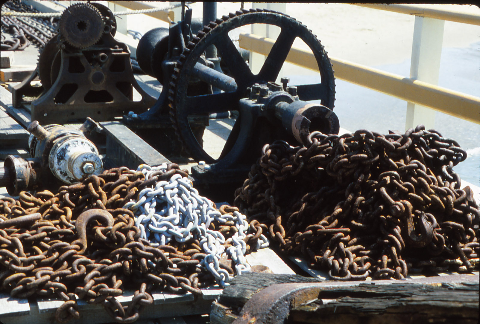 The Ektachrome slide did well, too, holding detail in the light colored chains as well as in the shadows of the rusty chains and the dark gears.