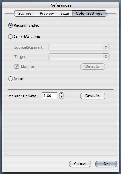 You can also set color profiles for the scanner, target and monitor or opt for automatic color matching using the default, built-in target. Because Scan Gear doesn't build a profile, however, this isn't much use.