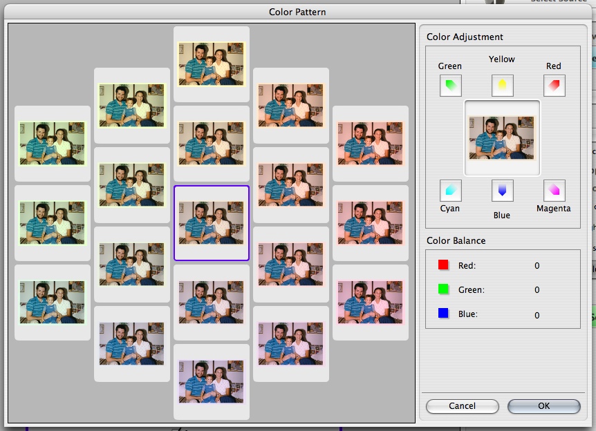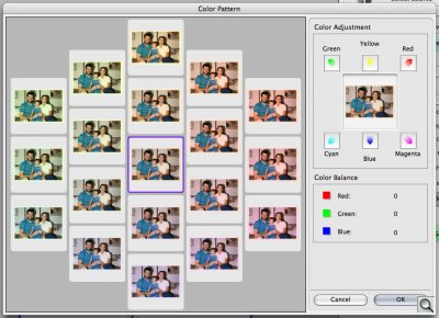 Color Pattern makes color judgements a lot easier by providing 18 variations of the image on one screen. You just pick the one that looks more natural. It would help if the thumbnails were a little bigger, but that's our only complaint.