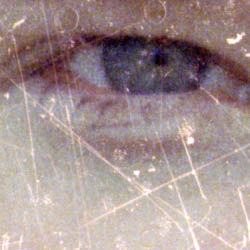 At maximum scanner resolution, the defects cover significant areas of subject detail, making correction much more difficult. |
